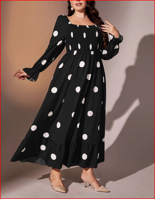 Plus Swiss Dot Plicated Flounce Sleeve Blouse